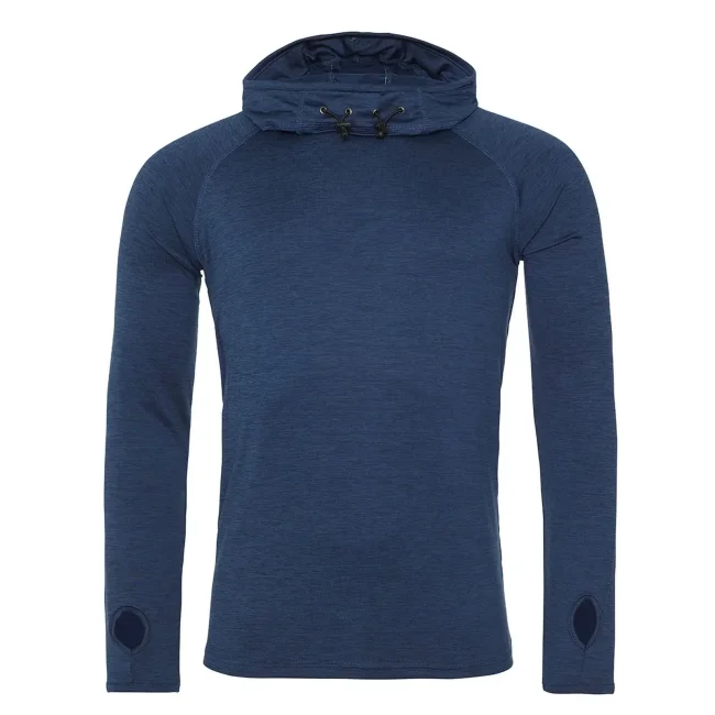 92% poliestere 8% elastan. Maglia da uomo con cappuccio, collo ad anello, maniche raglan, elementi riflettenti sul cappuccio, cuciture piatte, etichetta strappabile.