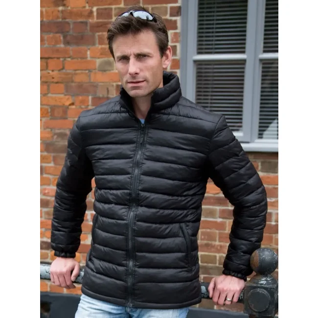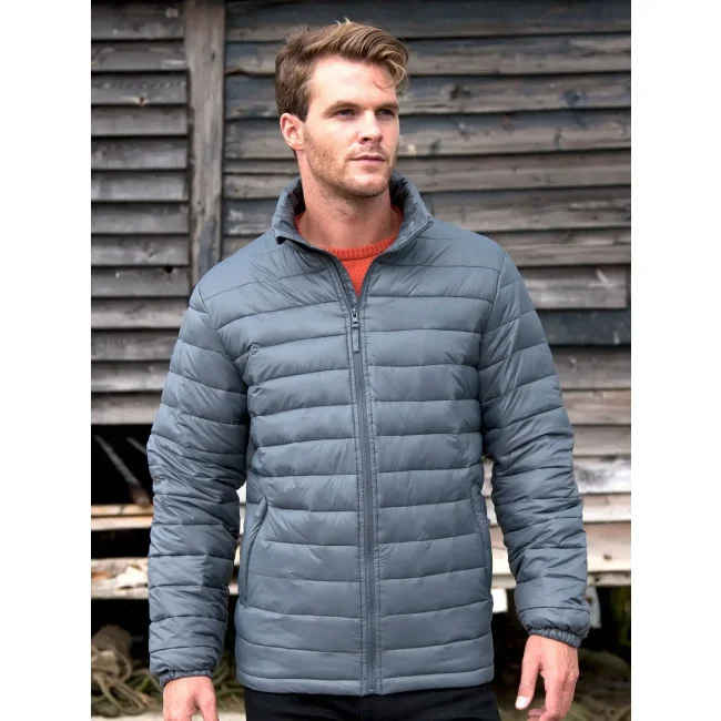 100% 20D nylon. Piumino leggero con fodera in nylon e imbottitura in poliestere. Zip intera e colletto alto YKK, polsini elasticizzati, due tasche frontali con cerniera, taschino interno.