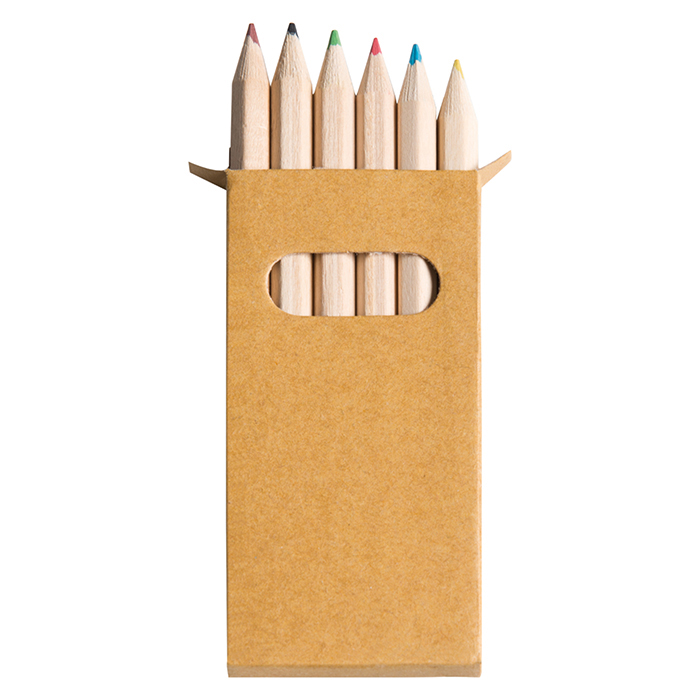 set 6 mini pastelli custodia in cartoncino naturale forniti già temperate tecnica di stampa consigliata: serigrafica - tampografica - UV