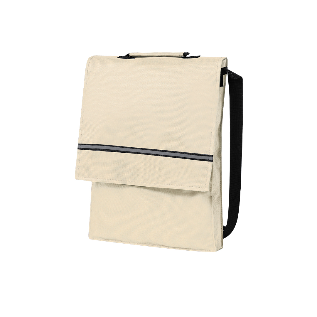 Portadocumenti con patta con chiusura in velcro in poliestere 600D dai colori vivaci con striscia frontale rinfrangente. Con manico rinforzato in tinta, tracolla regolabile e scomparti interni con portapenne e porta smartphone.