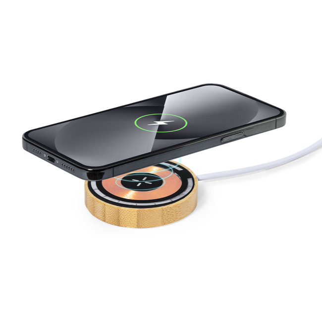 Caricabatterie wireless da 15W, design originale con superficie trasparente che permette di vedere i componenti interni del dispositivo. Con base in bambù e attacco magnetico Magsafe, compatibile con i dispositivi dotati di tecnologia di ricarica wireless Qi. Connessione di tipo C, con manuale di istruzioni in inglese e spagnolo. Presentato in una scatola individuale dal design kraft.Materiali come il bambù favoriscono l'utilizzo di materie prime naturali, riducendo le emissioni inquinanti. Proviene da una pianta altamente resistente e versatile, con una rapida crescita e rigenerazione, che rappresenta un'ottima alternativa all'uso del legno tradizionale.Prodotto secondo gli standard RoHS e in conformità ai seguenti requisiti di sicurezza:Sistema di protezione dal surriscaldamento.Sistema di protezione dal sovraccarico.Sistema di blocco per evitare cortocircuiti.