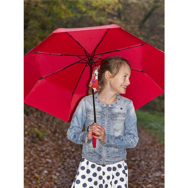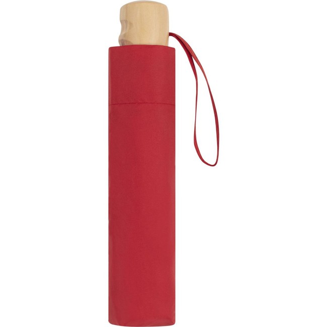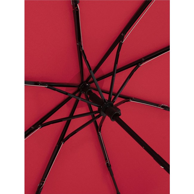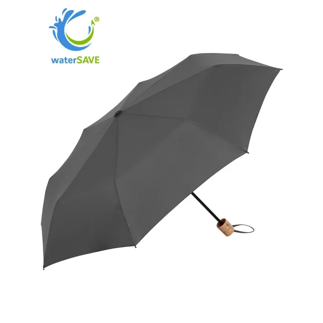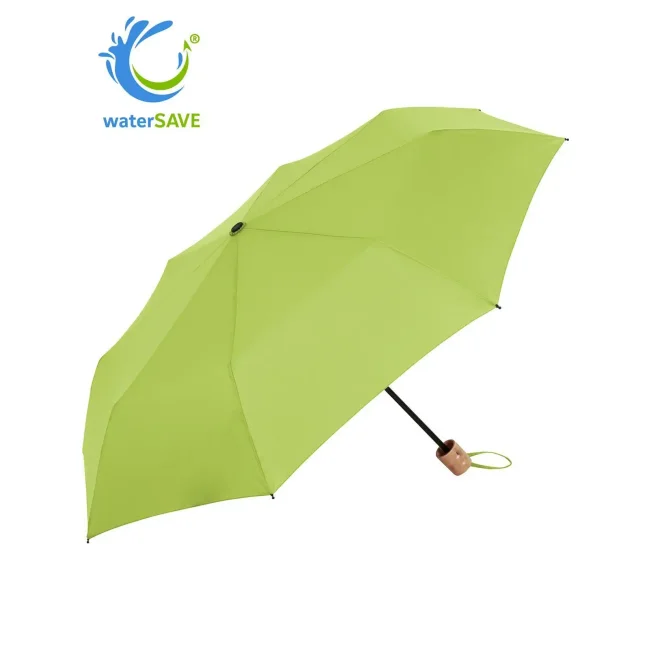 Copertura: 100% poliestere pongee, manico: legno, asta: acciaio. Ombrello tascabile e maneggevole, con apertura manuale e con fodera di plastica riciclata WaterSAVE, certificato STANDARD 100 by OEKO-TEX, sistema Windproof, impugnatura in vero legno con possibilità di personalizzazione. Diametro: 98 cm, lunghezza da chiuso: 26 cm, 8 pannelli.