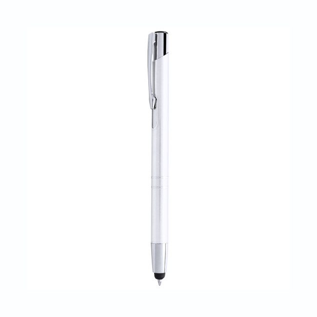 Penna touch con meccanismo a pulsante in colori divertenti. Finitura in alluminio lucido, cartuccia jumbo e inchiostro blu.