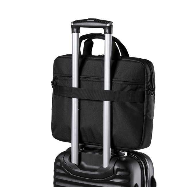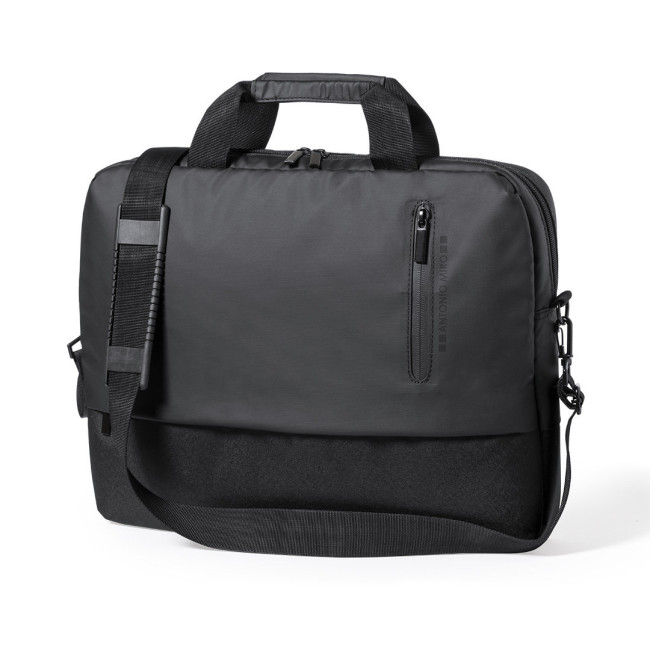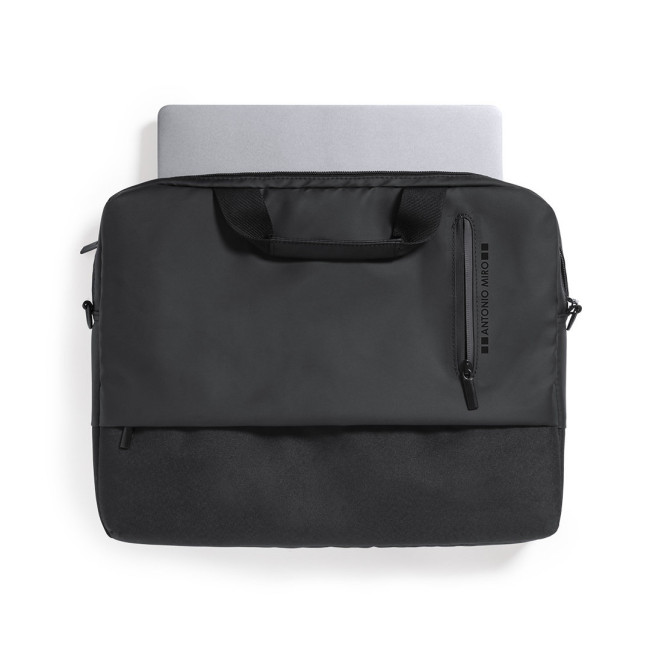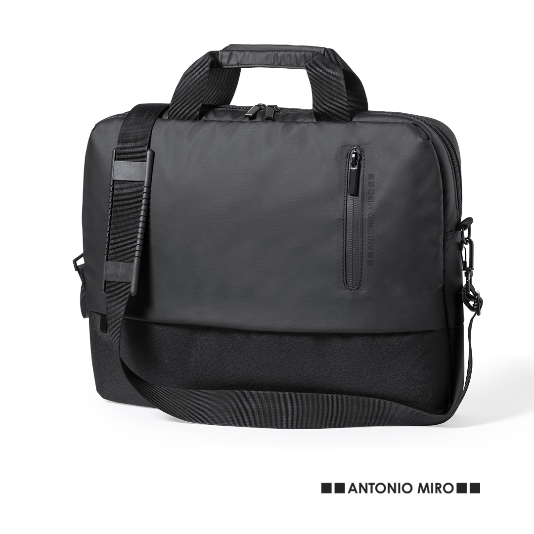 Valigetta Antonio Miro di qualità superiore in resistente poliestere 600D. Con un design sobrio e uno scomparto imbottito per notebook fino a 15". Con comoda maniglia di trasporto rinforzata, chiusure lampo con maniglie in metallo e tasca frontale. Logo Mirò sul davanti.