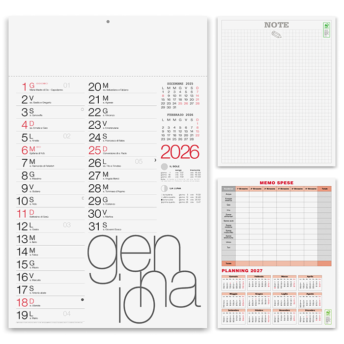 olandese mensile 12 fogli carta patinata 70gr testata termosaldata festività internazionali pagina note stampata sul retro tecnica di stampa consigliata: adesivo digitale - serigrafica