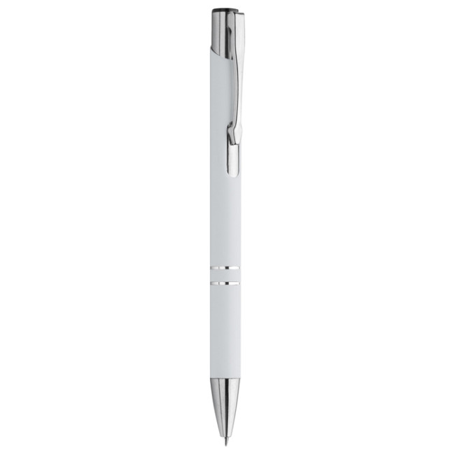 penna a sfera in metallo meccanismo a scatto fusto con rifinitura matta minuterie in metallo cromato refill nero