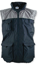 MONTEROSA Gilet "ACTIWEAR" multitasche in colore blu e grigio, con interno in pile, reversibile, Chiusura con zip e coulisse in vita. Lato nylon: 3 tasche zip. Lato pile: 2 tasche zip. Confezione in nylon.