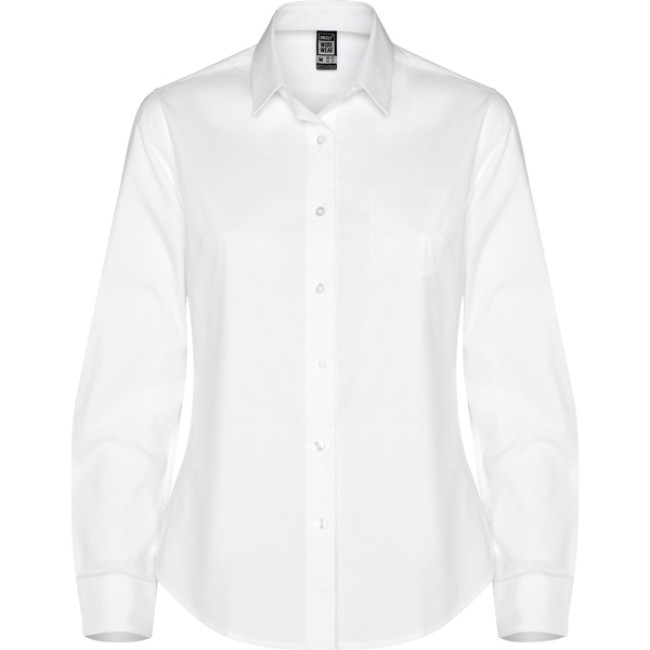 Camicia da donna a maniche lunghe in tessuto elasticizzato. · Colletto a coste.· Pieghe sul petto e sulla schiena.· Abbottonatura frontale con bottoni a vista.· Polsini con due bottoni.· Carré posteriore.· Orlo arrotondato.