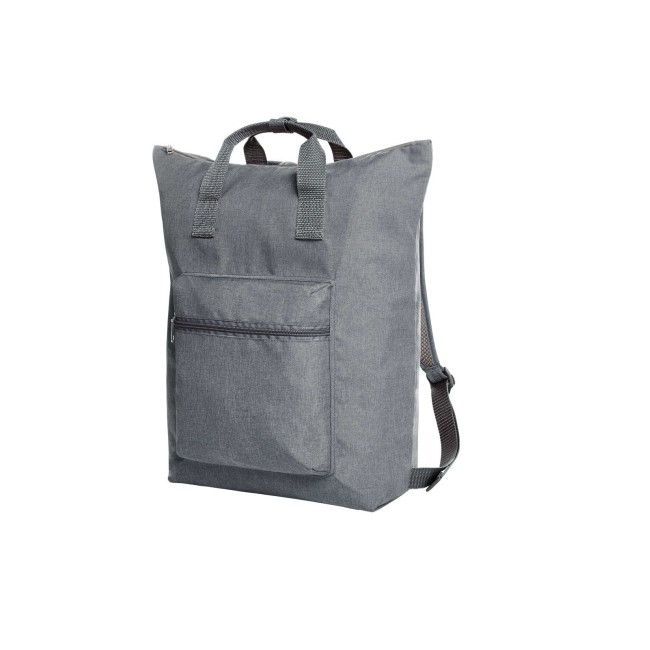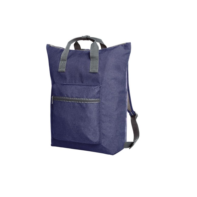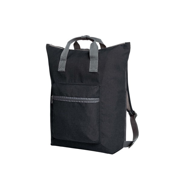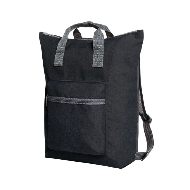 100% poliestere 300d. Shopper a zaino richiudibile scomparto principale, tasca anteriore e tasca interna con chiusura lampo, manici con polsino a pulsante, sistema di trasporto traspirante. Area di stampa sul fronte: 7 x 8 cm, nella tasca frontale: 14 x 10 cm. Dimensioni: 41 x 43 x 13 cm. Capacità: 18 litri.