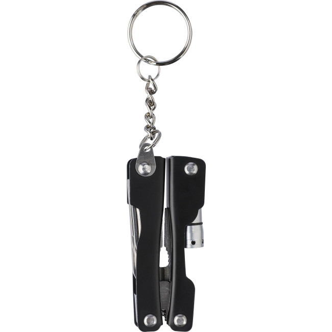 Multi tools pieghevole in acciaio inox con 10 funzioni, include singola torcia a LED, custodia in poliestere 600 D con chiusura in velcro agganciabile alla cintura, confezionato singolarmente in una scatola in cartone avana