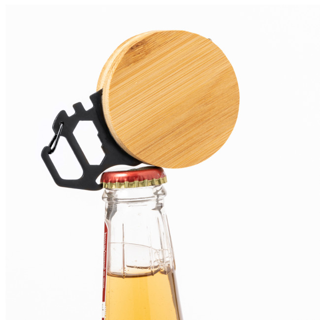 Multiutensile versatile realizzato in acciaio inox e bambù, dotato di sette funzioni tra cui un metro a nastro di 1 metro e una chiave per dadi esagonali. Presentato in una scatola kraft di design, il bambù riduce le emissioni inquinanti grazie alla sua rapida crescita e rigenerazione.