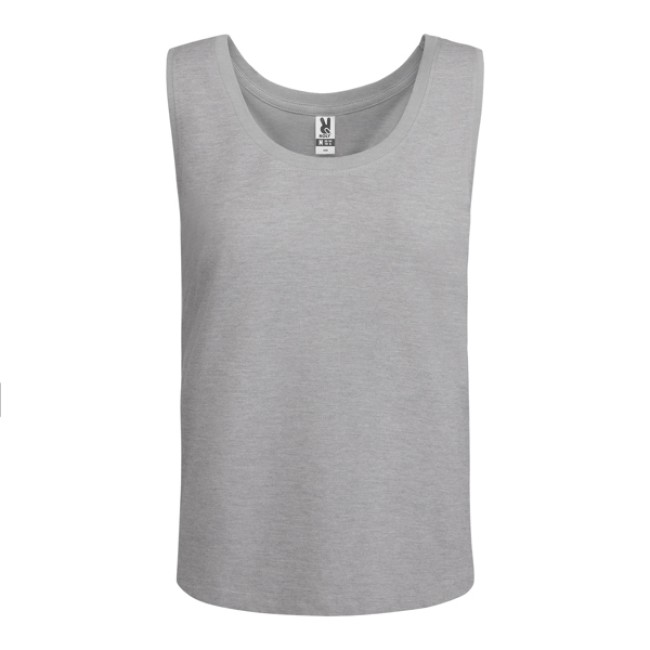 T-shirt da donna con spalline larghe. Scollo e giromanica in costina 1x1. Orlo arrotondato. Cuciture laterali.
