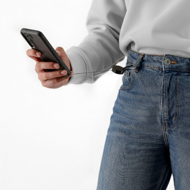 Portasmartphone estensibile da 60 cm. Un accessorio da mettere tra la custodia e lo smartphone e un moschettone metallico rotante. Include un moschettone all'estremità per essere appeso e trasportarlo facilmente.