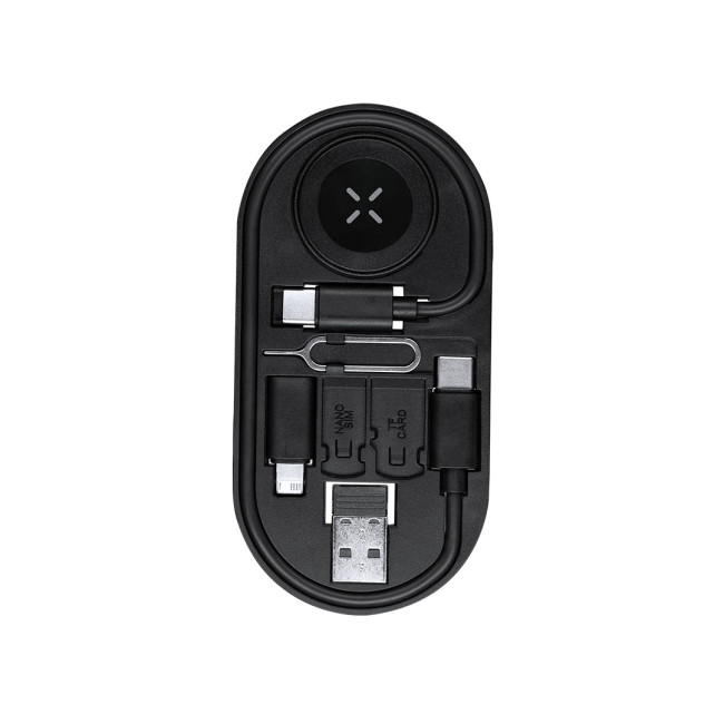 Set di cavi caricabatterie in ABS riciclato (RABS). Include:- Ricarica wireless per smartwatch,- Cavo multifunzione con teste USB, di tipo C e Lightning, compatibile con una vasta gamma di dispositivi e capace di trasferimento dati.- Pin di espulsione SIM, con fessure per lo stoccaggio di Nano SIM e schede TF.Il RABS è una plastica altamente riciclabile di grande resistenza e con molteplici applicazioni che lo rendono una soluzione eco-friendly. Con certificazione RCS, che garantisce l'origine riciclata dello stesso e con logo RABS inciso.