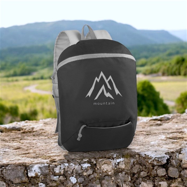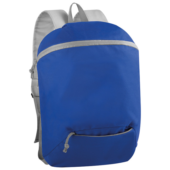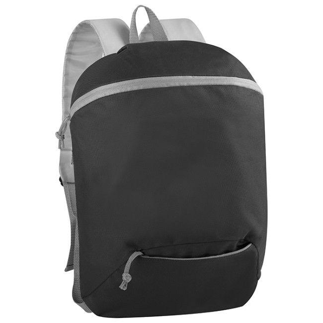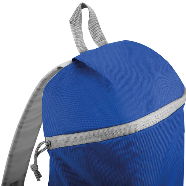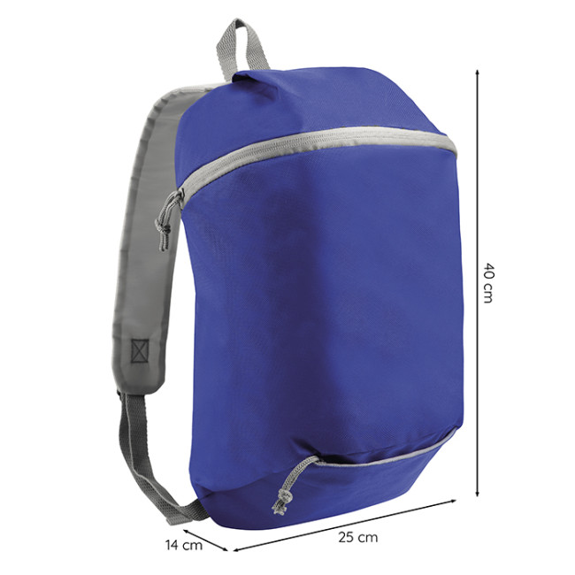 zaino in poliestere 300d tasca sul fondo schienale imbottito spallacci regolabili e imbottiti chiusura zip a scomparsa cordoncino zipper puller