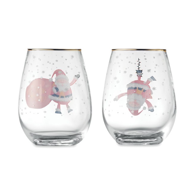 Set di 2 bicchieri di Natale con bordo dorato. Presentato in una scatola regalo. Capacità: 330ml. Iniziate a brindare servendo in questi divertenti bicchieri a tema natalizio. Sono un grande e divertente regalo da fare perchè vengono forniti in coppia in una confezione regalo.