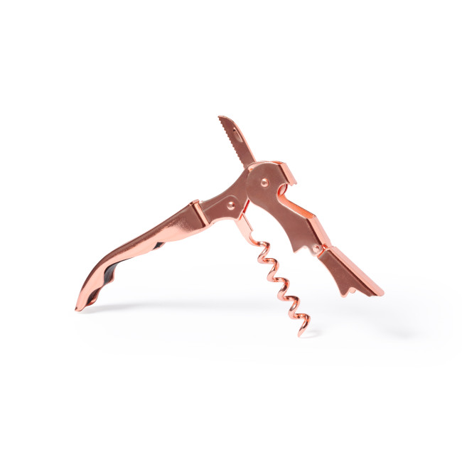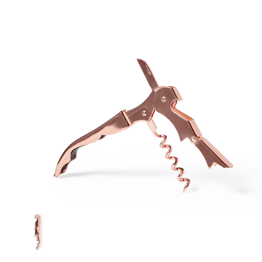 Cavatappi a 2 tempi in acciaio inox con rivestimento in rame galvanizzato. Taglierina per capsule integrata e presentato in una confezione singola di design.