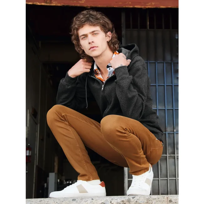 50% cotone 50% poliestere nublend. Felpa zip e cappuccio in tessuto NuBlend resistente ai pelucchi, realizzata con cotone coltivato negli Stati Uniti da fonti sostenibili, alta densità di punti per una tela di stampa liscia, cappuccio a 1 strato con occhielli, cordino abbinato con punta e annodato, cerniera in alluminio, tasca frontale a marsupio, cucitura a due aghi su collo, giromanica e girovita, polsini e girovita a costina. Etichetta removibile.