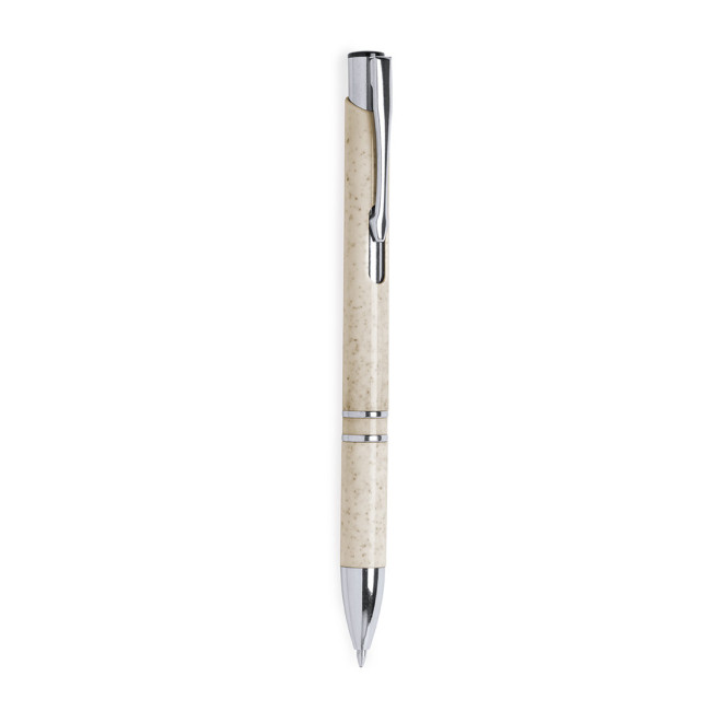Penna della linea natura con fusto in fibra di grano per promuovere l'uso di materie prime naturali e ridurre le emissioni inquinanti. Clip in metallo e accessori cromati. Meccanismo a pulsante, cartuccia jumbo e inchiostro blu. Disponibile in un'ampia gamma di colori naturali.