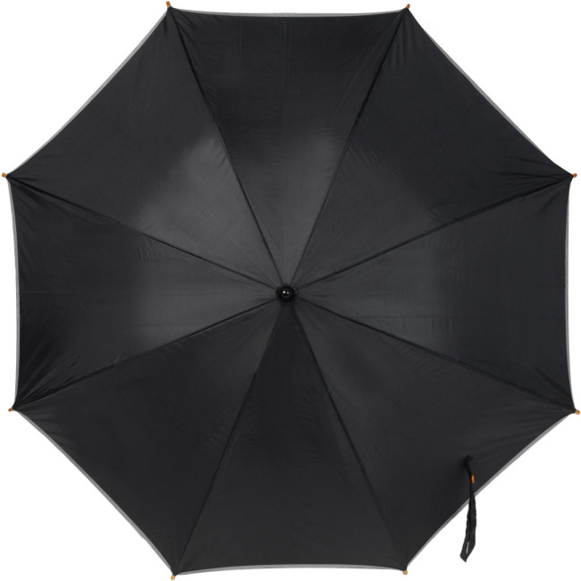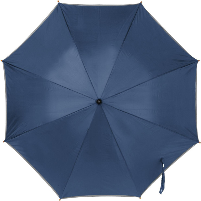 Ombrello con apertura automatica, bordo riflettente, manico in legno, in poliestere 190 T