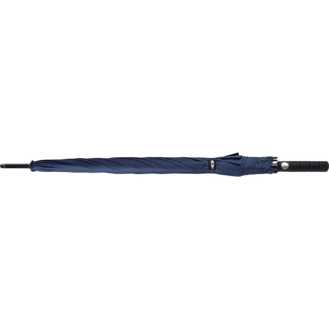 Ombrello Golf con apertura automatica in rPET 190T (27 pollici), otto pannelli, struttura in fibra di vetro, pulsante per l'apertura, etichetta in rPET sulla chiusura in velcro, antivento.