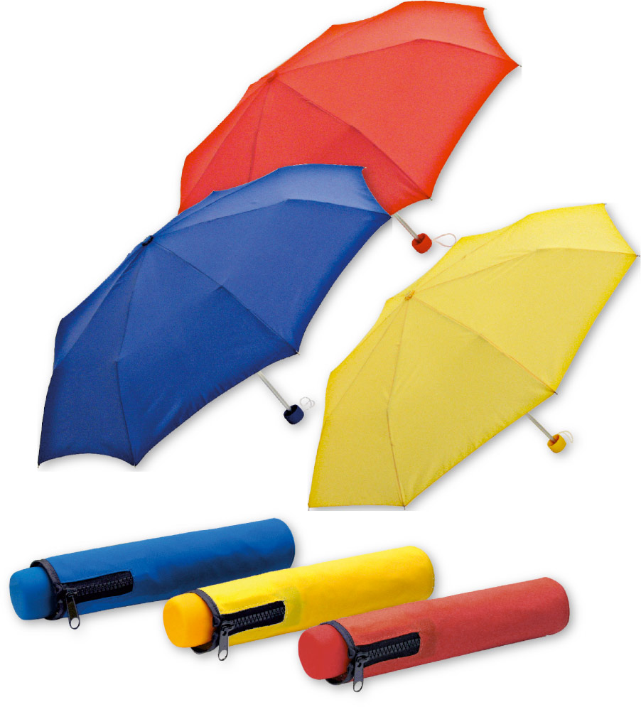 Ombrello tascabile in pongee a 8 spicchi, dotato di asta in alluminio per una maggiore leggerezza. Viene fornito con un astuccio coordinato con chiusura zip e confezione in nylon per un facile trasporto.