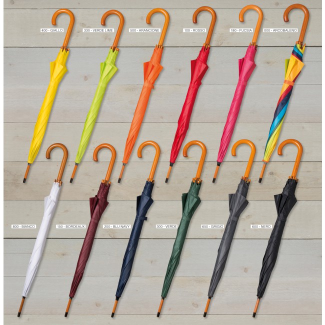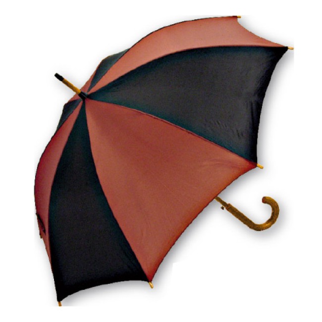 Ombrello in poliestere 190T, Puntale e manico in legno color ciliegio. Apertura automatica. Confezione in nylon.