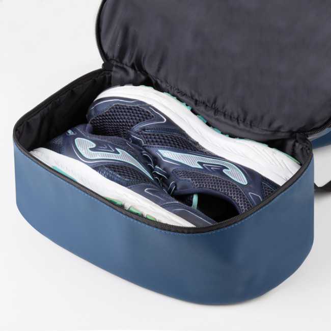 zaino a sacca pu soft touch waterproof 1 vano principale con chiusura a strozzo 1 vano portascarpe separato con chiusura a zip 2 tasche esterne separate con zip spallacci regolabili in nylon resistente