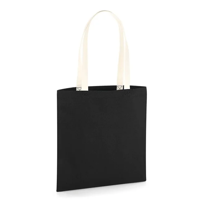 100% cotone canvas. Borsa in cotone certificato OCS, manici in colore contrastante, tessuto resistente, può essere portata a mano o in spalla. Etichetta removibile. Lunghezza manico: 67 cm. Dimensioni: 38 x 42 cm, capacità: 10 litri, area stampabile: 33 x 36 cm.