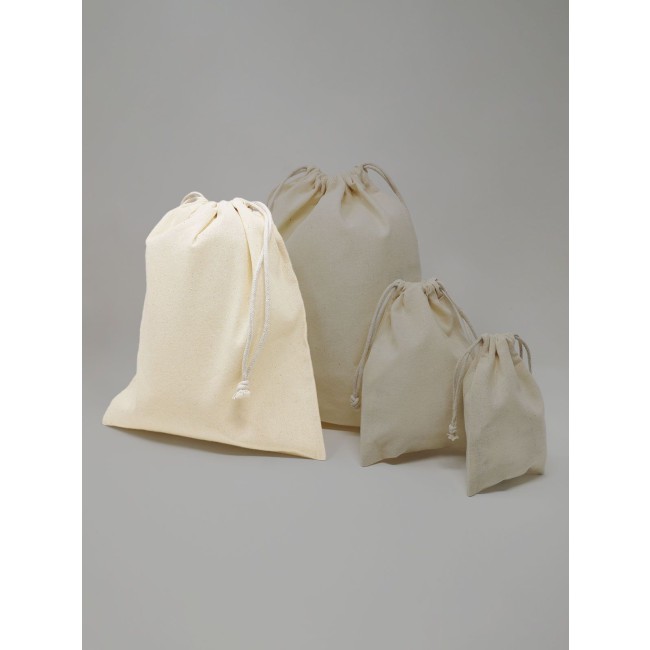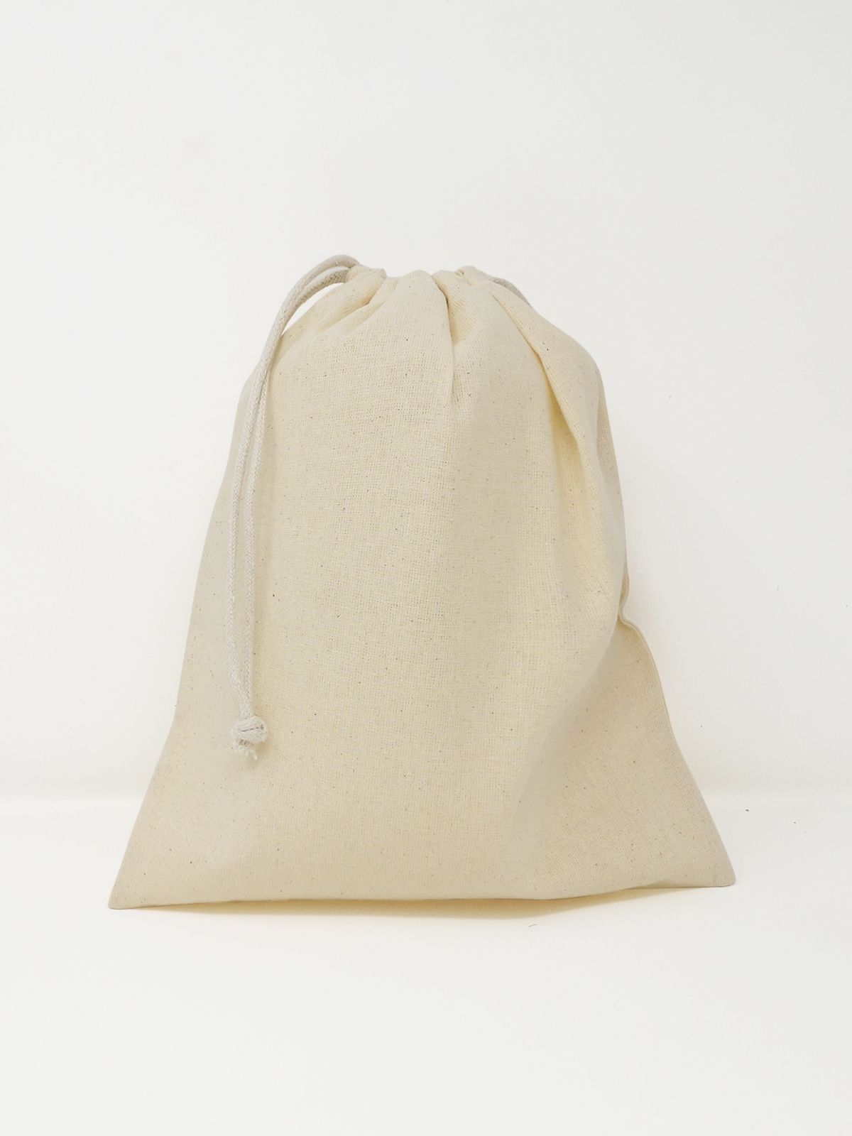100% cotone organico. Sacchetti con cordino doppio in colore naturale. Dimensioni: XS: 10x15 c, cap. 0,25 lt. - S: 15x20 cm, cap. 1 lt. - M: 25x30 cm, cap. 3 lt. - L: 30x40 cm, cap. 7 lt.