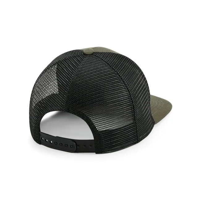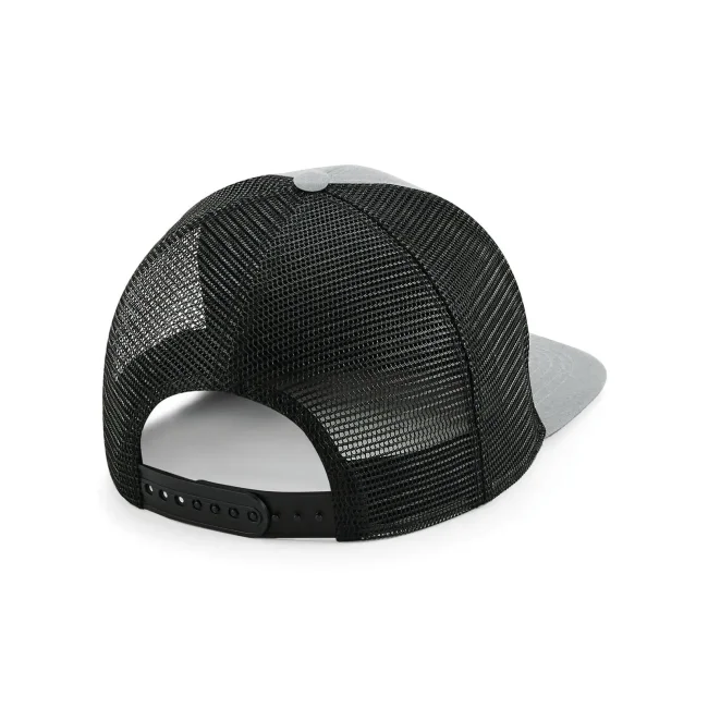 Pannello frontale e visiera 100% Twill di Poliestere. Pannelli posteriori a rete 100% poliestere. Cappellino a 6 pannelli, etichetta removibile per cambiare più facilmente il marchio, pannelli frontali strutturati, visiera piatta, adesivo originale sulla visiera, Regolatore snapback.