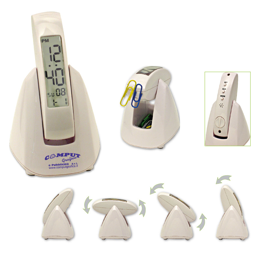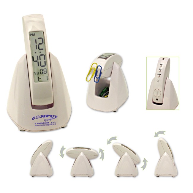 Orologio da scrivania con dispenser di clips. Set di clips colorate incluse.
