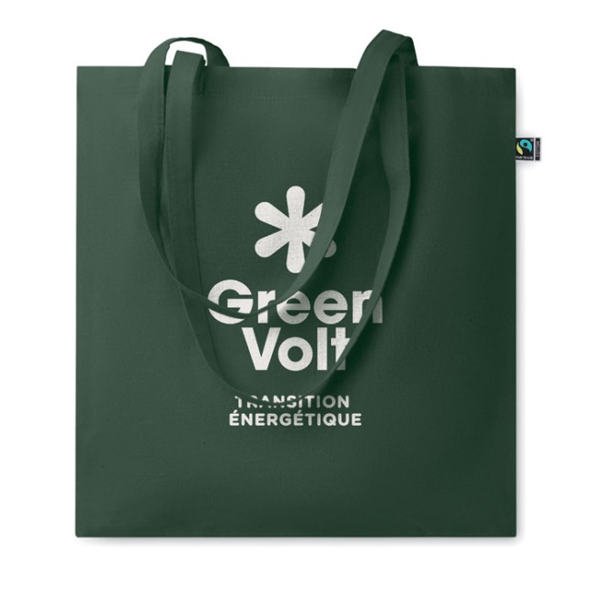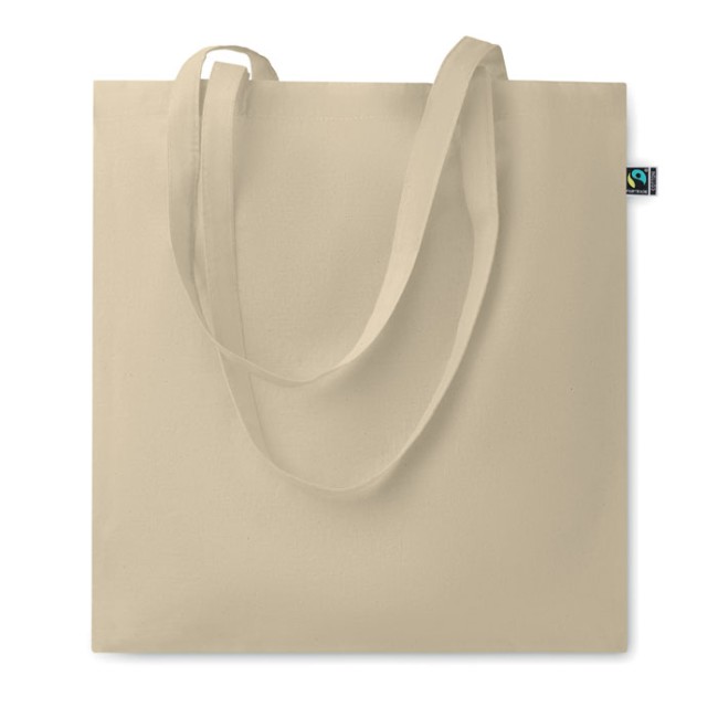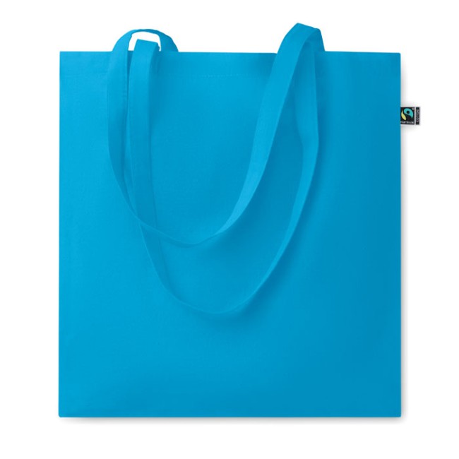 Shopper in cotone tinto Fairtrade con manici lunghi. 140gr/m². Questo prodotto è certificato OEKO-TEX® STANDARD 100.