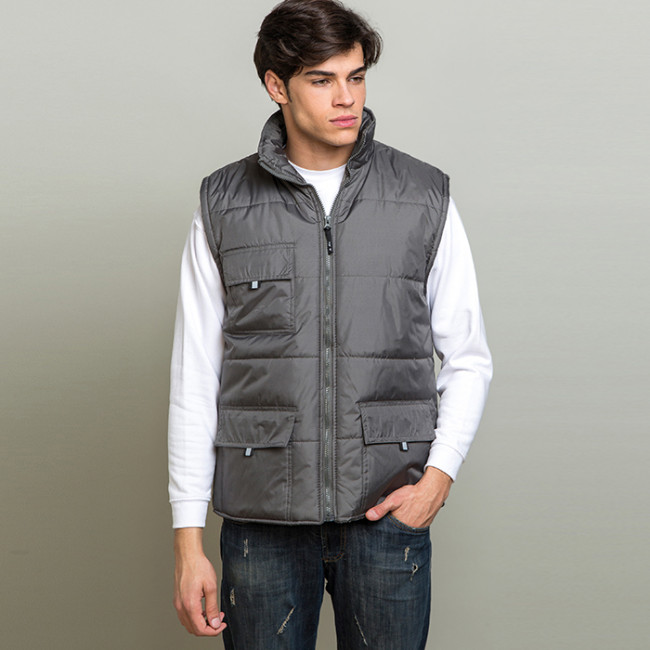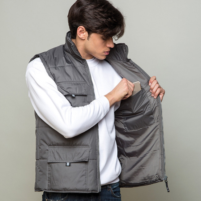 giubbino smanicato in poliestere pongee zip lunga con cursore removibile tasca interna tasche esterne con velcro e occhiello catarifrangente