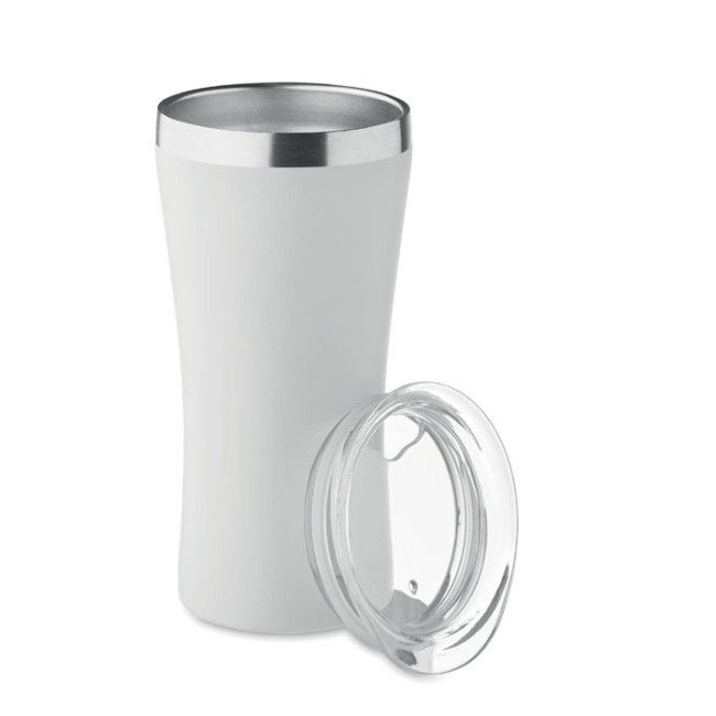 Piccolo bicchiere isolato sottovuoto a doppio strato in acciaio inox riciclato (90% acciaio inox riciclato e 10% acciaio inox) con coperchio con foro per bere in PP trasparente. Capacità: 160 ml.