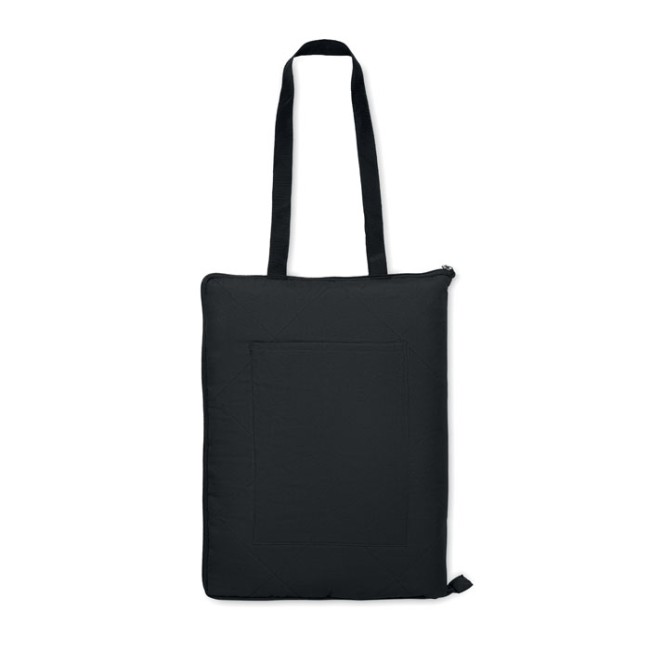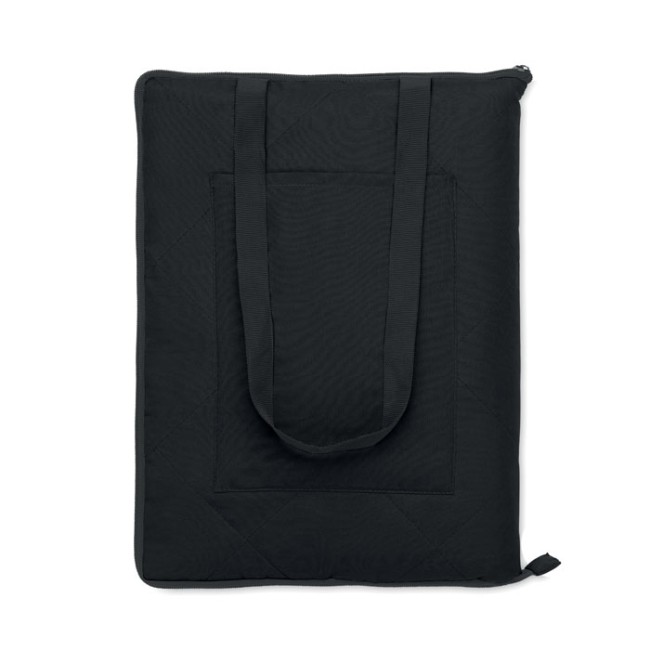 Coperta da picnic pieghevole trapuntata con rivestimento in PEVA plastificato sul retro. Si ripiega in una comoda borsa da trasporto e ha una tracolla regolabile. Ampia tasca laterale anteriore.