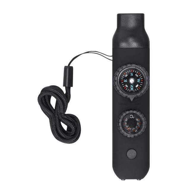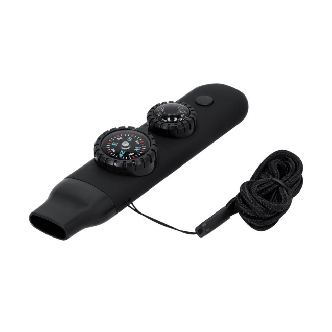 Fischietto di sopravvivenza realizzato in ABS resistente con finitura gommosa. Integra 6 funzioni essenziali: - Bussola di 2,55 cm di diametro, con indicazioni Nord, Sud, Est e Ovest. - Fischietto ad alta potenza, ideale per emettere segnali di emergenza. - Termometro con temperatura da -20 ºC a 50 ºC. - Lente d'ingrandimento di 2 cm di diametro, perfetto per osservare piccoli dettagli o persino per accendere fuochi concentrando la luce solare. - Specchio, Integrata nella parte inferiore della bussola.- Torcia con 2 LED e pulsante on/off in alto.Include un cavo pratico per un facile trasporto, ideale per essere appesa comodamente al collo.