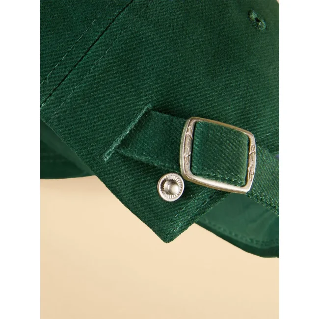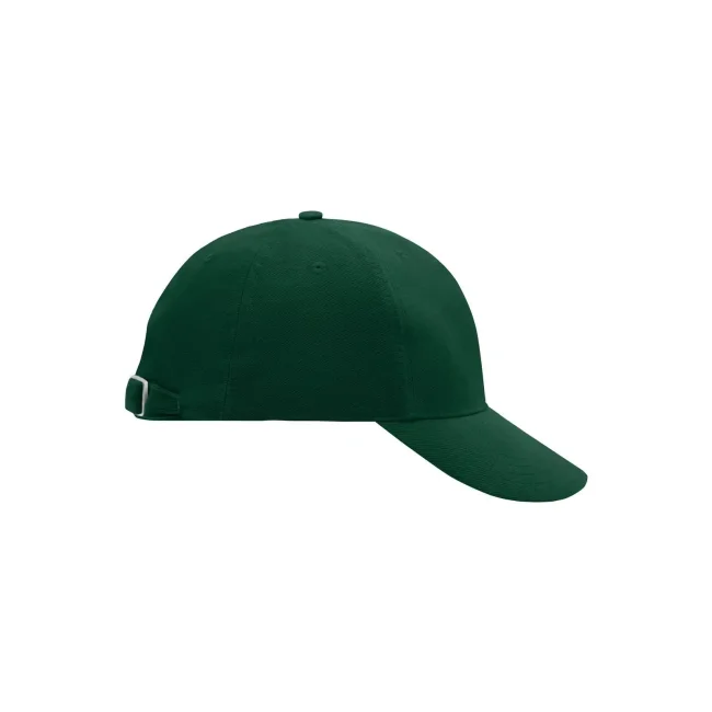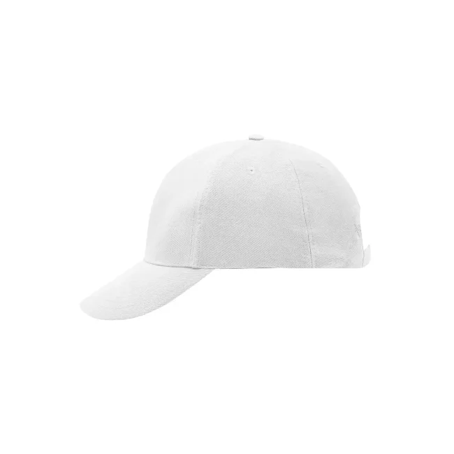 100% cotone. Cap Classico a 6 pannelli 6 fori traspiranti imbastiti, 8 cuciture decorative sulla visiera. Pannelli frontali laminati, Fascetta tergisudore imbottita, Fibbia in metallo argentata con bottone a pressione e asola in stoffa. Cotone spazzolato forte, ruvido.