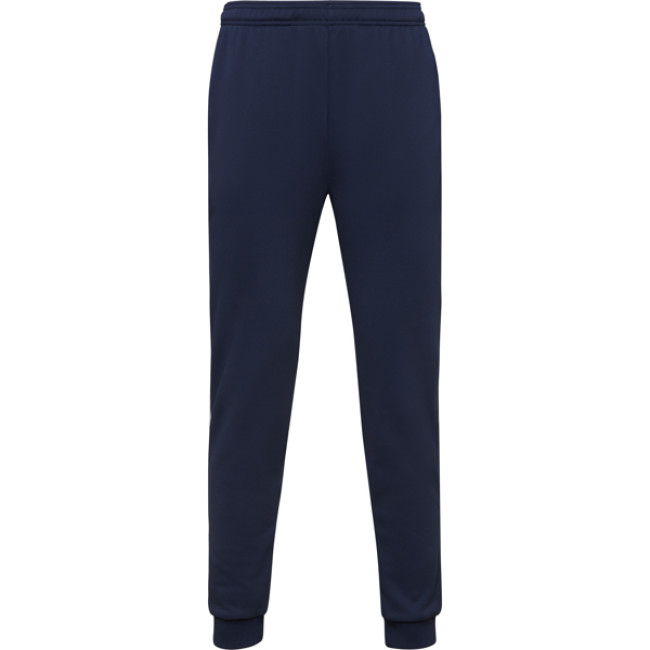 Pantaloni sportivi RODAS dotati di elastico in vita e cordoncino regolabile per una vestibilità personalizzata. Presentano tasche laterali con chiusura a zip e bande a contrasto in bianco, mentre l'orlo è rifinito con polsino a costine 1x1. Abbinabili alla giacca LEROS, offrono un look sportivo e dinamico.