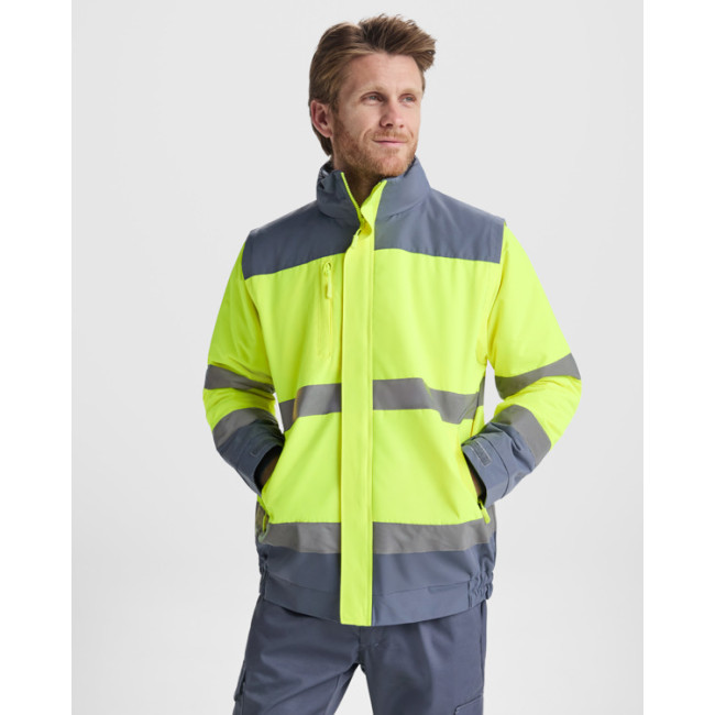 Parka trapuntato ad alta visibilità, progettato per resistere a condizioni climatiche avverse. Include maniche rimovibili, tasche funzionali e chiusura con velcro e zip centrale. È personalizzabile con logo aziendale per un'identità distintiva.
