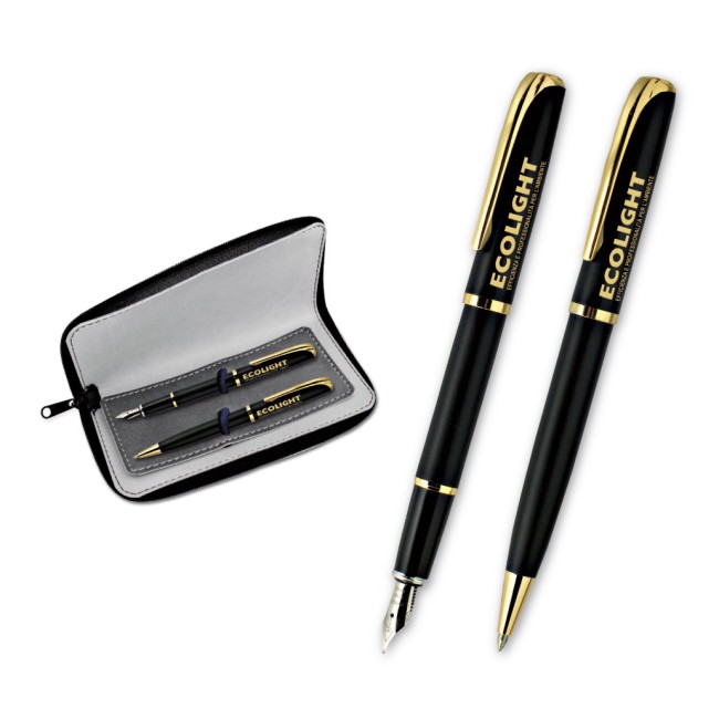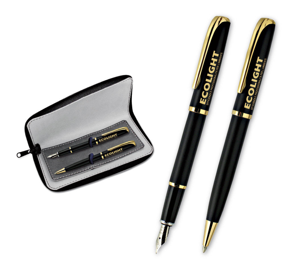 Parure wrc composta p.sfera a rotazione e penna stilografica fusto metallo nero finiture dorate refil nero astuccio di confezione similpelle nero