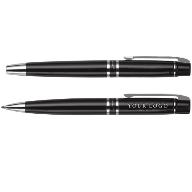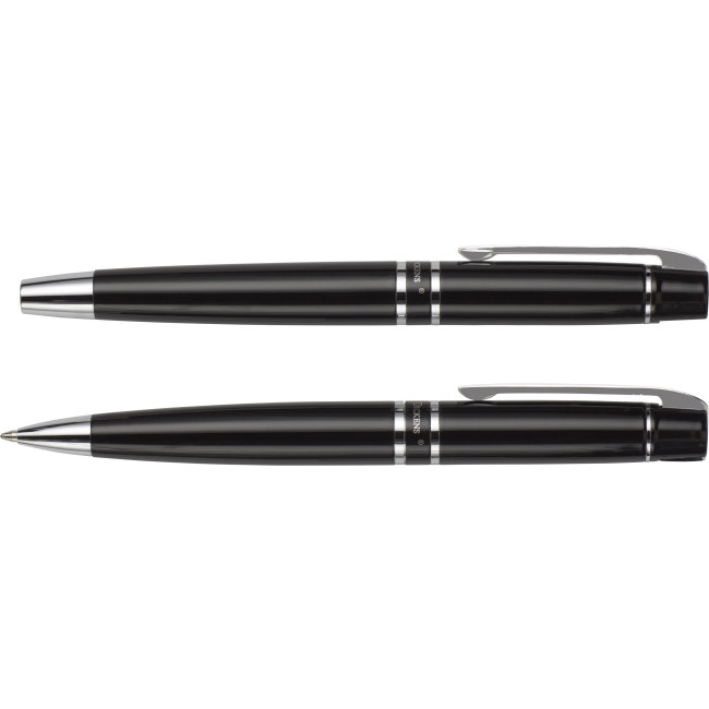 Charles Dickens®, set scrittura in metallo, finiture cromate, con penna a sfera e rollerball, meccanismo a rotazione, refill nero, elegante astuccio in PU