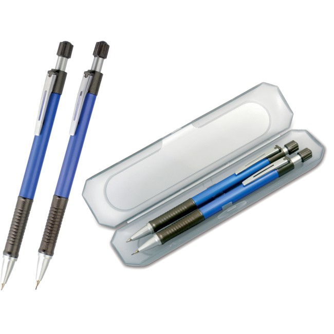 Parure alluminio penna sfera e mina refil blu con astuccio plastica trasparente