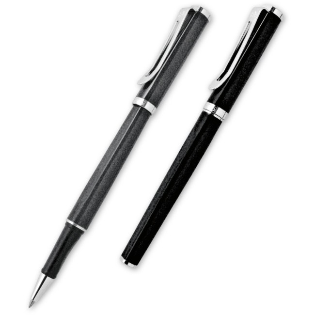 Parure penna sfera e roller. Metallo verniciato nero. Refil ink nero 1.0 mm.