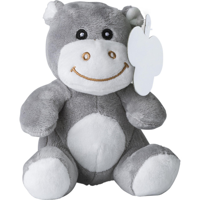 Peluche giocattolo ippopotamo, occhi ricamati, include etichetta per la personalizzazione