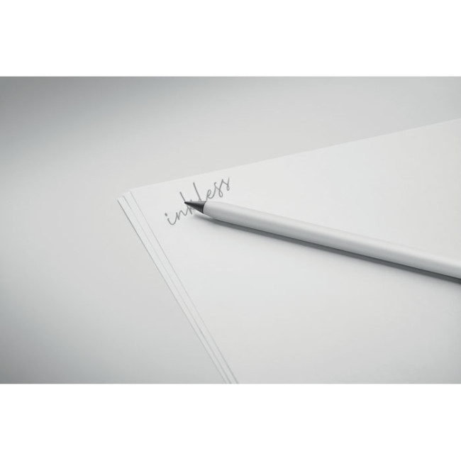 Penna inkless in alluminio riciclato di lunga durata. La penna scrive con la punta in grafite dotata di una protezione in plastica.