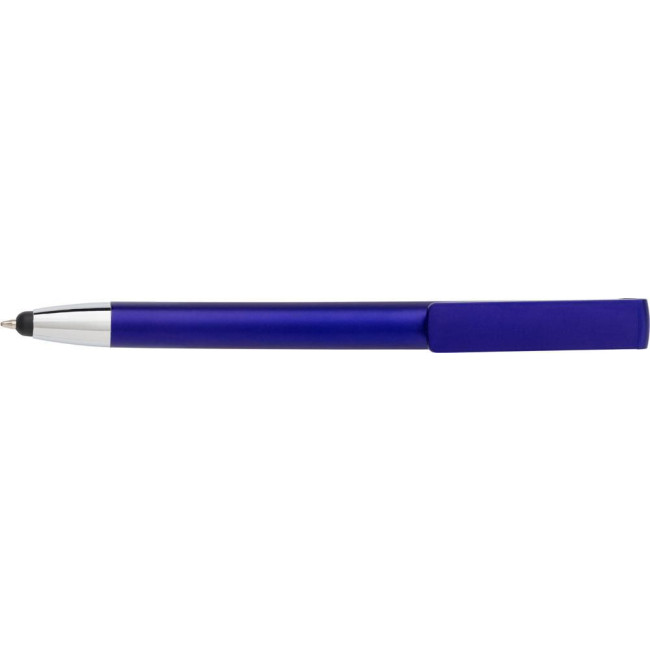 Penna a sfera in ABS capacitiva (compatibile su schermi touch), funzione supporto smartphone, refill jumbo blu