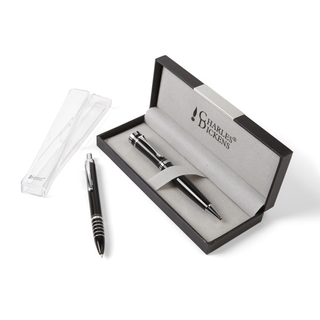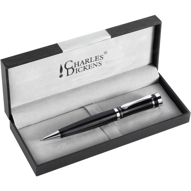 Charles Dickens®, penna a sfera in metallo Bibi, con finiture cromate, meccanismo a rotazione, refill nero, elegante astuccio