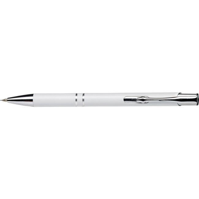 Penna a sfera in alluminio, corpo colorato, due anelli decorativi, punta e clip in metallo, refill blu. Fornito del certificato German Dokumental Ink