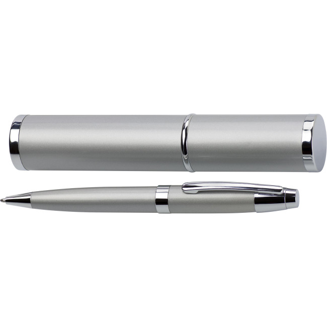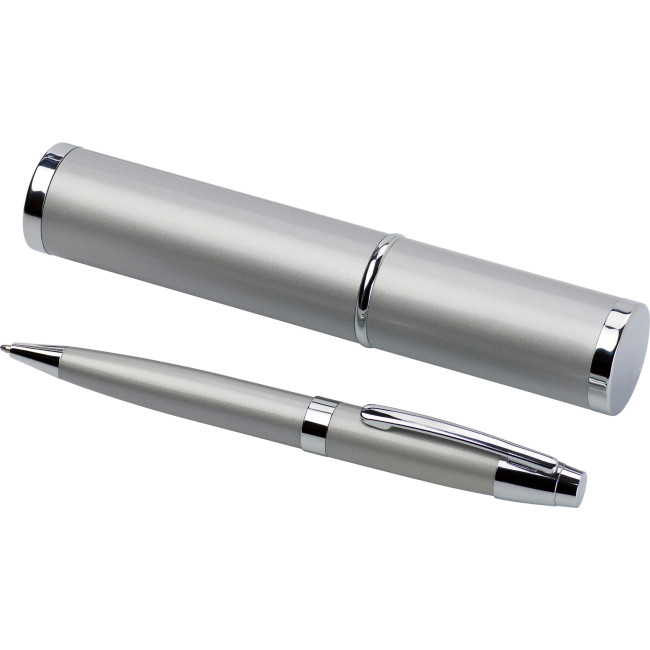 Penna a sfera in metallo, elegante astuccio, refill nero, vendita per multipli d'imballo da 50 pezzi.